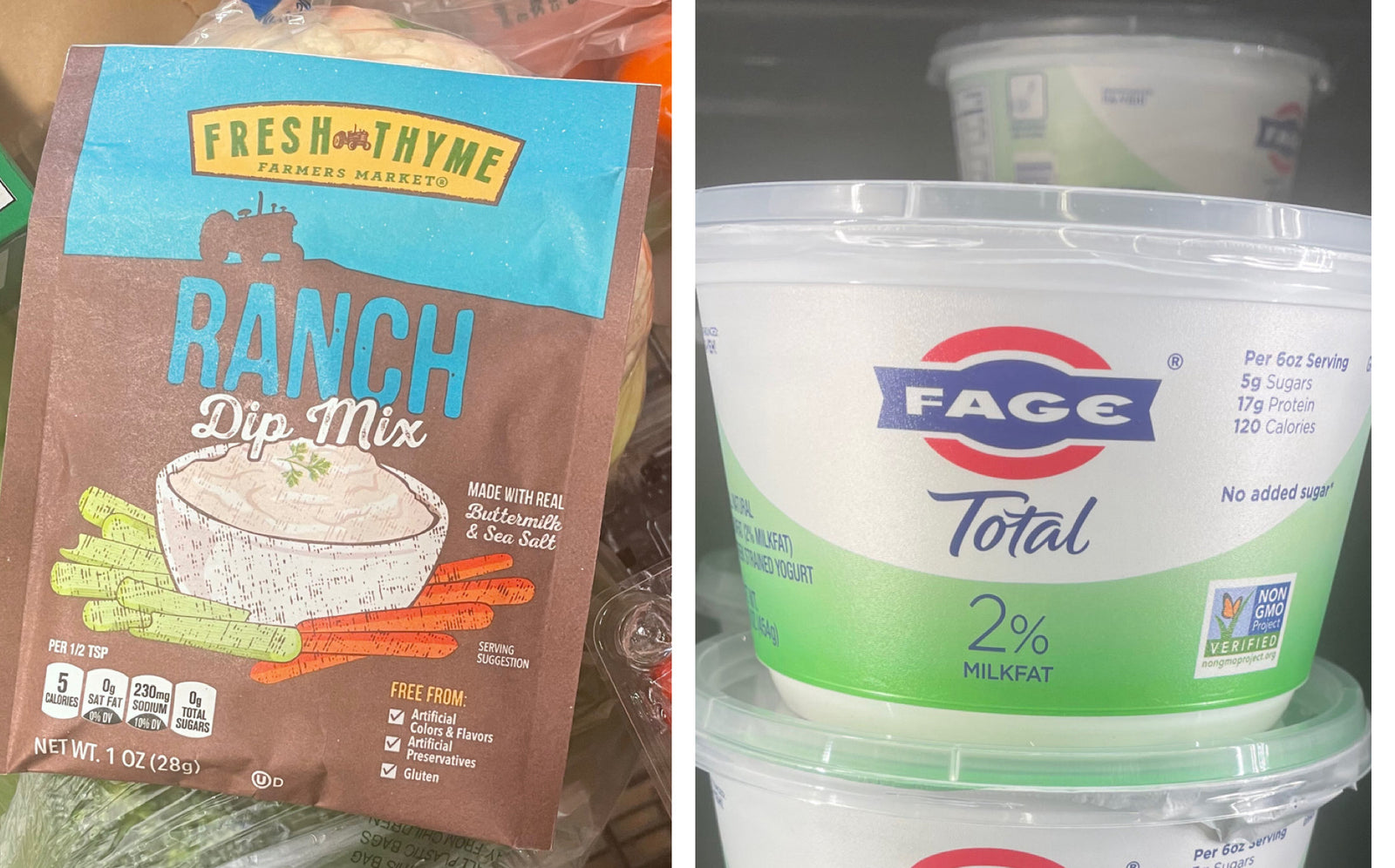 Choose-your-toppings grilled chicken patty sandwiches with veggies and dip: Costco carries these quick cooking chicken patties that can be microwaved, baked or grilled. Let your kids choose their toppings, like honey mustard and pickles or barbecue sauce and pineapple. Serve alongside veggies and hummus or ranch dip. Make a quick homemade ranch by mixing plain Greek yogurt with one packet of ranch dip mix.
